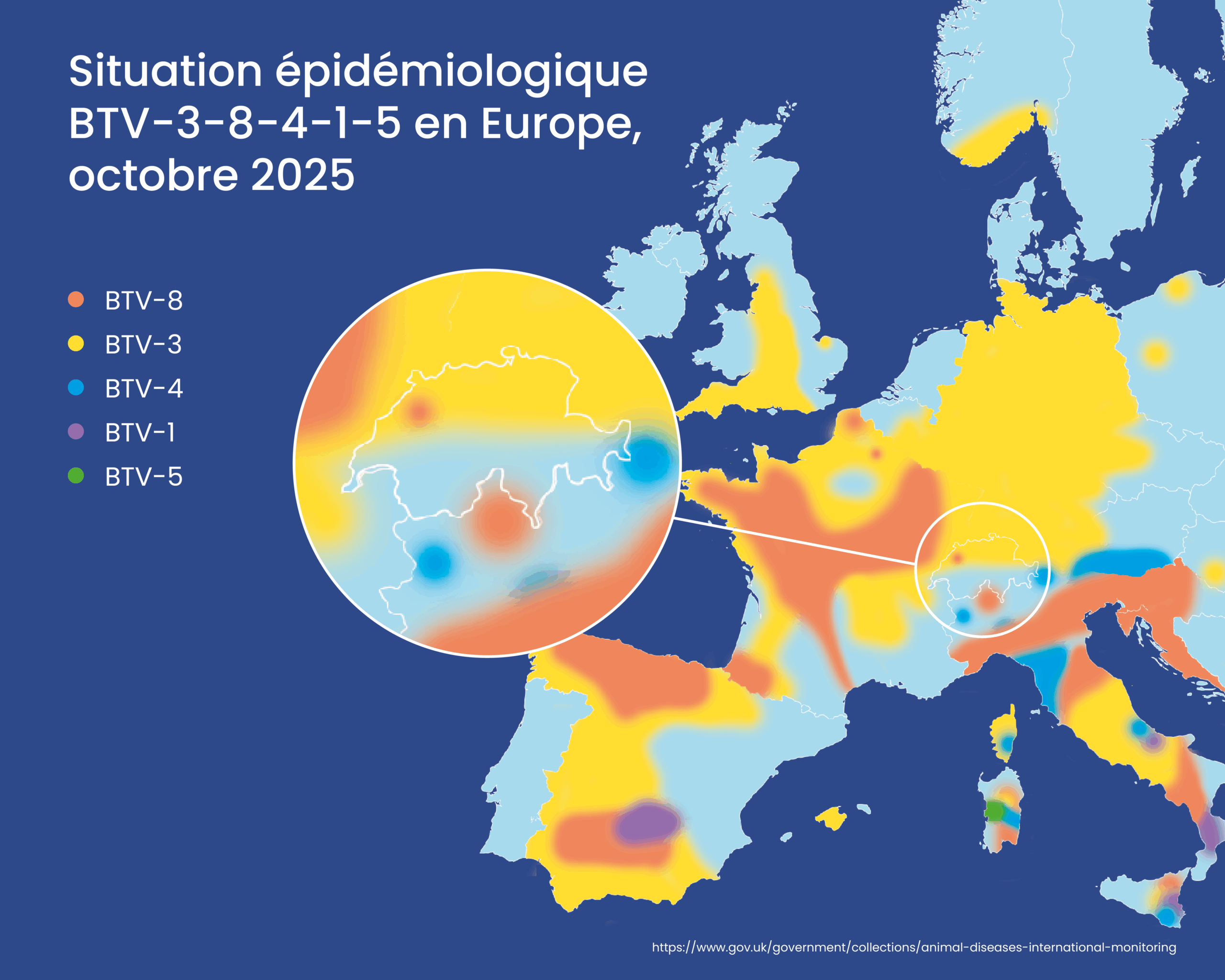 Les sérotypes 4 et 8 du virus de la langue bleue progressent rapidement et encerclent la Suisse.