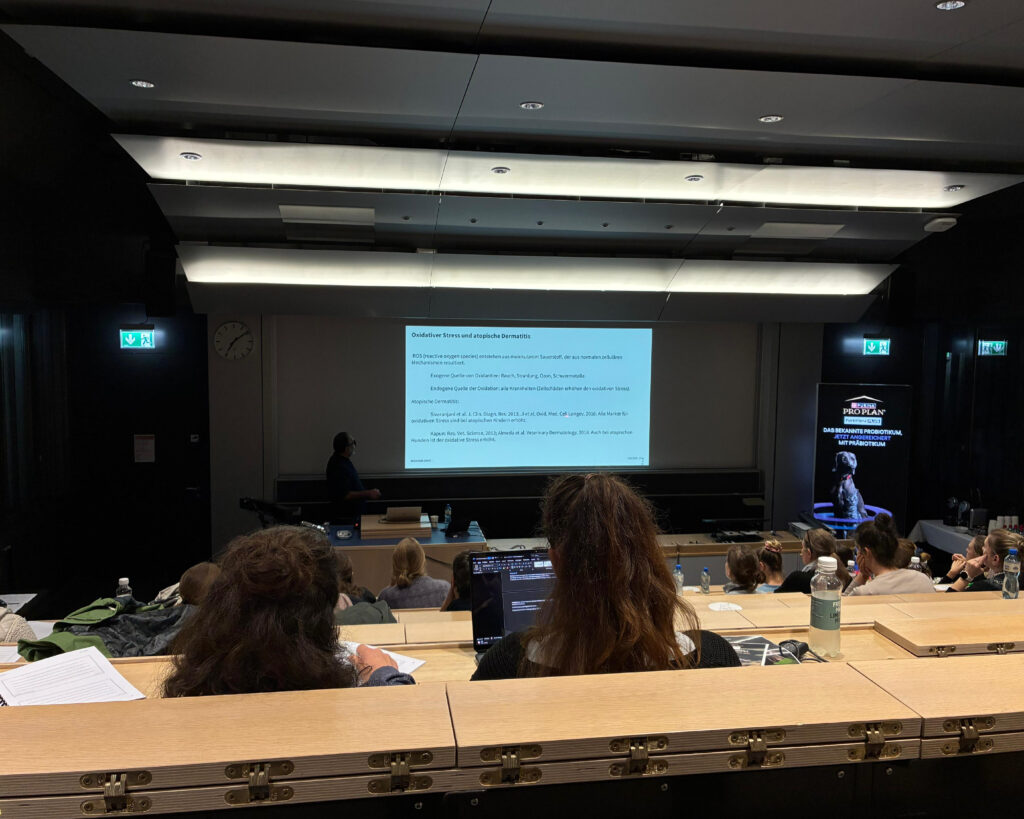 Biokema et Purina ont récemment eu le plaisir d’accueillir de nombreux vétérinaires pour une soirée de formation continue à l’Université de Zurich. Le séminaire, présenté par le Prof. Dr. med. vet. Claude Favrot, s’est penché sur les interactions complexes entre nutrition, santé intestinale et manifestations dermatologiques.